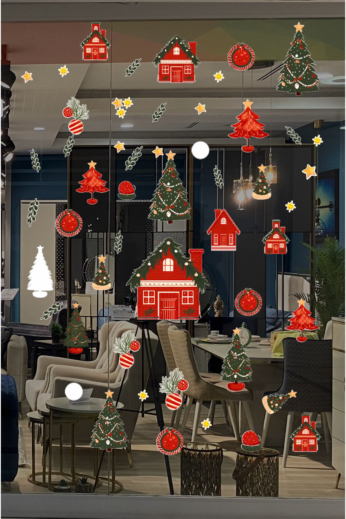 Karlı Evler ve Çam Ağacı Çocuk Odası Sticker Seti