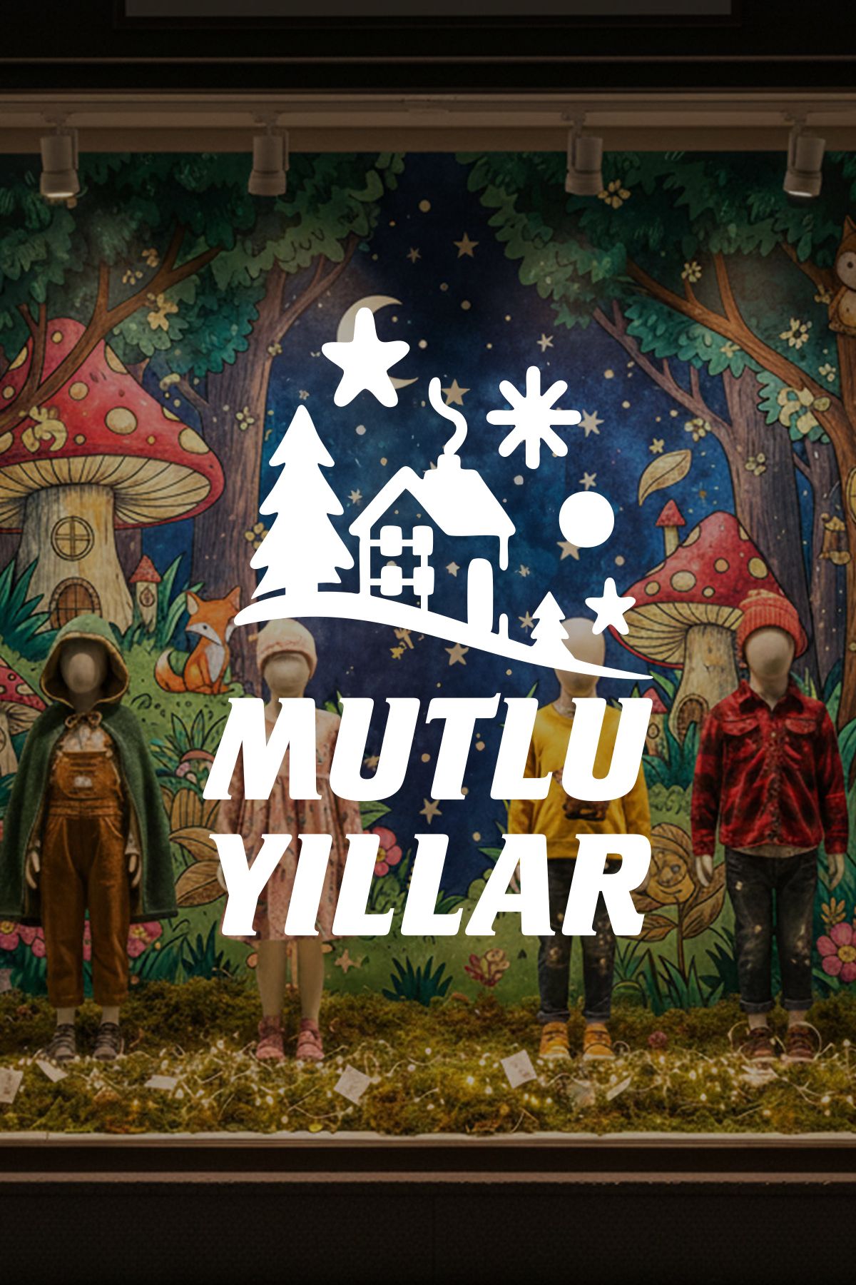 Kış Masalı Mutlu Yıllar Cam Vitrin Sticker