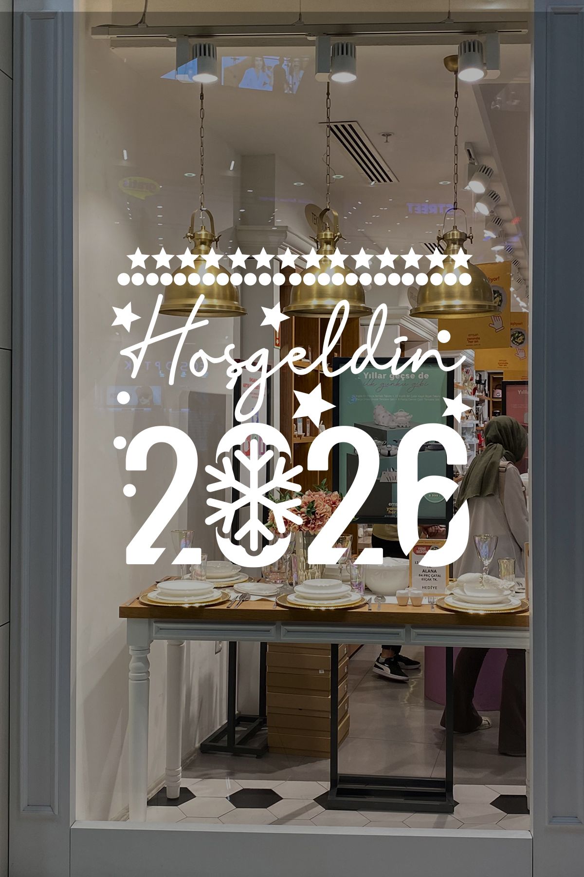 Hoşgeldin 2026 Yazısı Ve Kar Tanesi Cam Vitrin Sticker