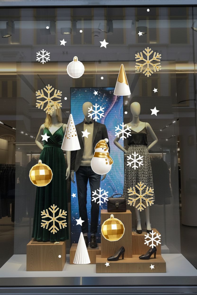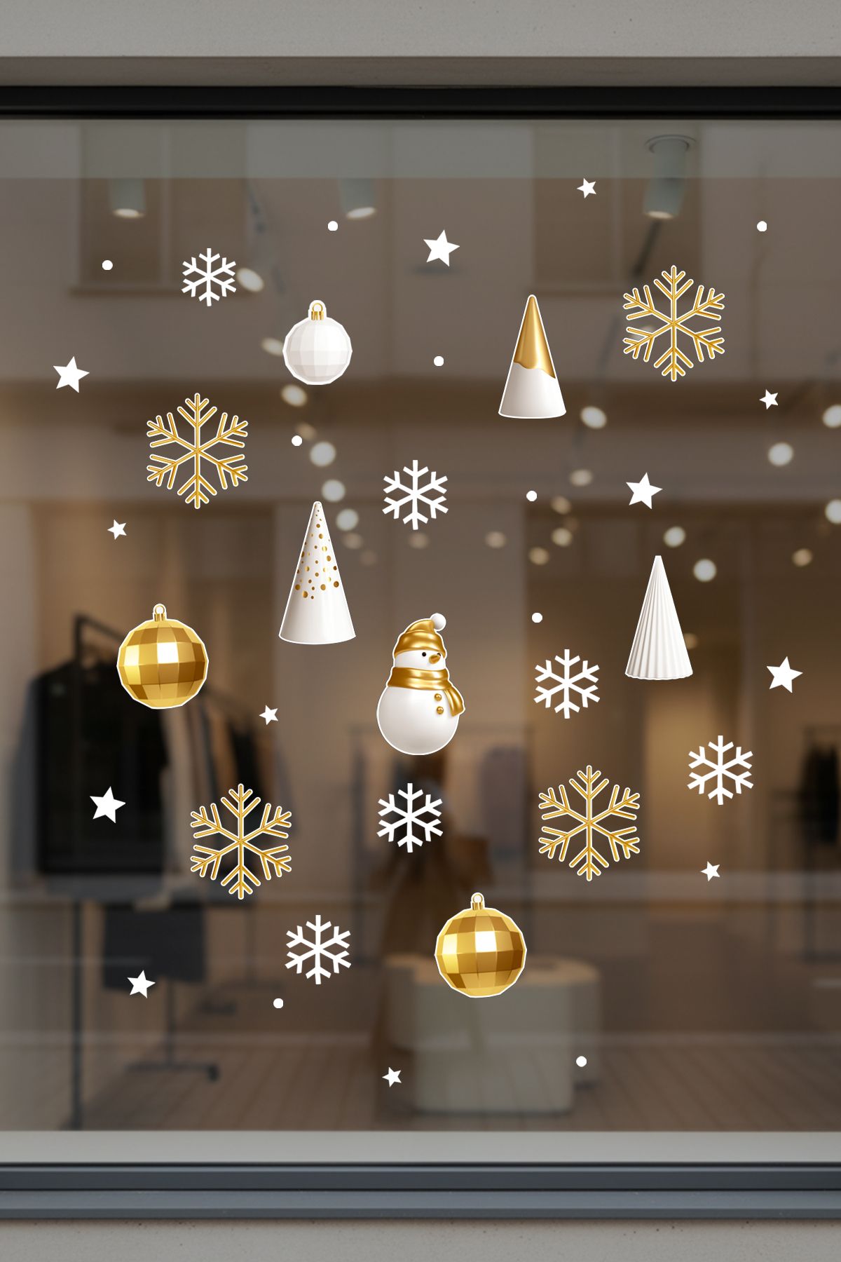 Bu altın rengi kar taneleri sticker seti, yılbaşı vitrinlerinizi muhteşem bir şekilde dekorasyon yapmanızı sağlamak için tasarlanmıştır. Şık ve zarif görünümü ile her türlü mekanda göz alıcı bir atmosfer yaratır. Kullanımı kolay ve pratik yapısı ile yılbaşı kutlamalarınıza zarif bir dokunuş katar.