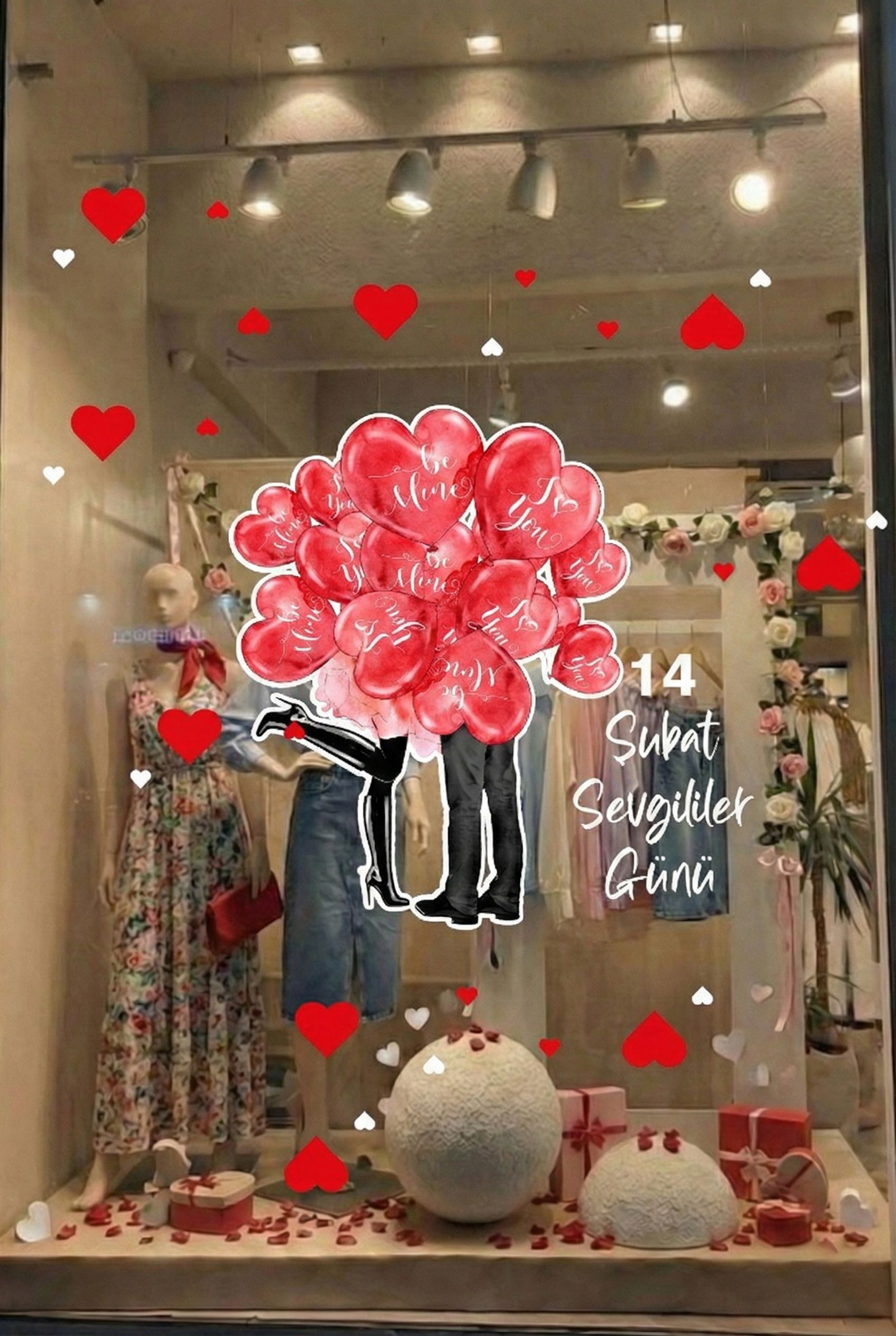 Bu şık ve renkli sticker, Sevgililer Günü'nü daha özel hale getirmek için mükemmel bir dekorasyon seçeneğidir. 70 cm genişliği ile cam, duvar veya düz yüzeylere kolayca uygulanabilir. Kendinden yapışkanlı malzemesi sayesinde montajı oldukça basittir ve uzun ömürlüdür.