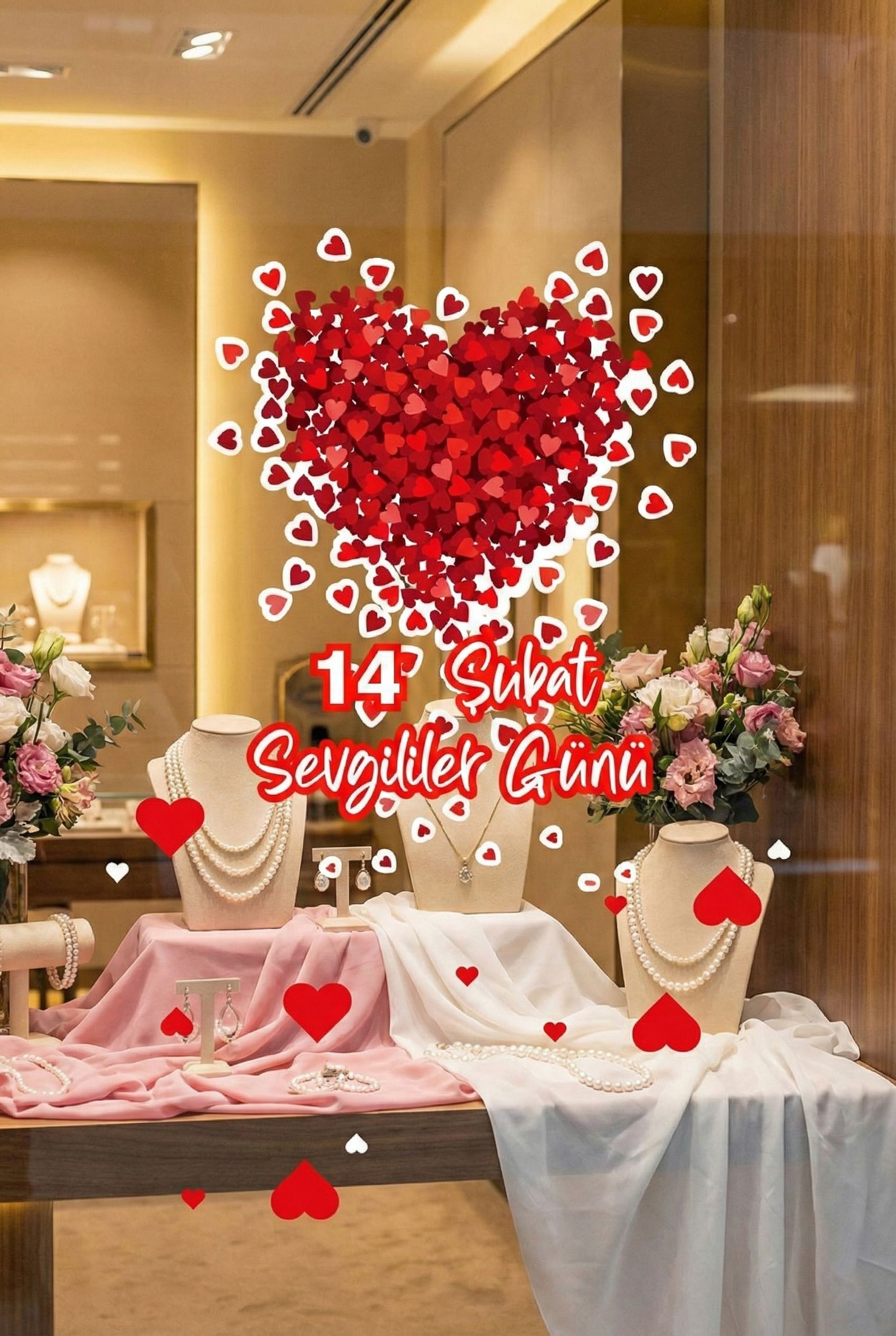 Sevgililer Günü ruhunu bulunduğu ortama taşıyarak sıcak ve romantik bir ambiyans oluşturur. Vitrin ve yaşam alanlarında dikkat çekici bir etki sağlar.