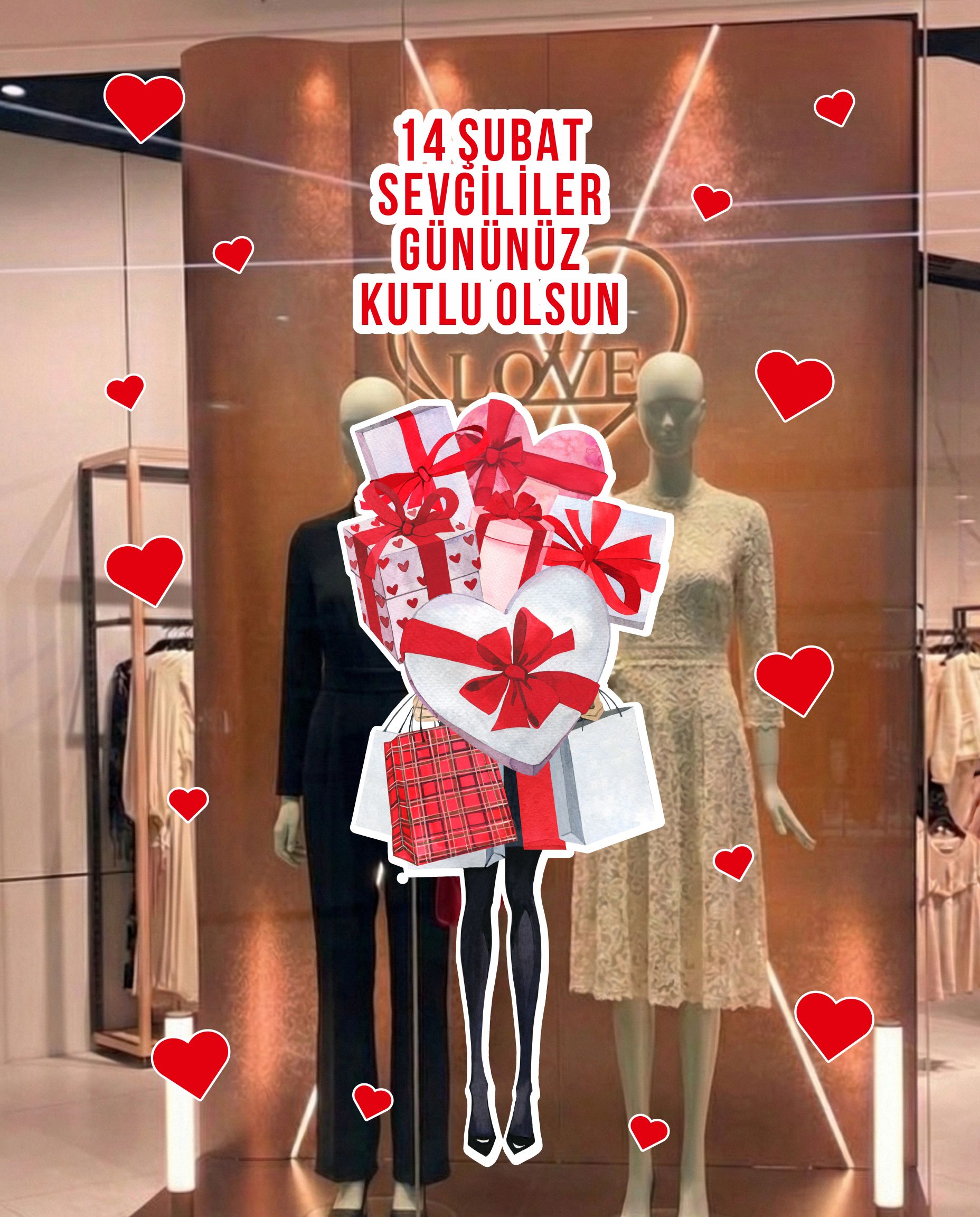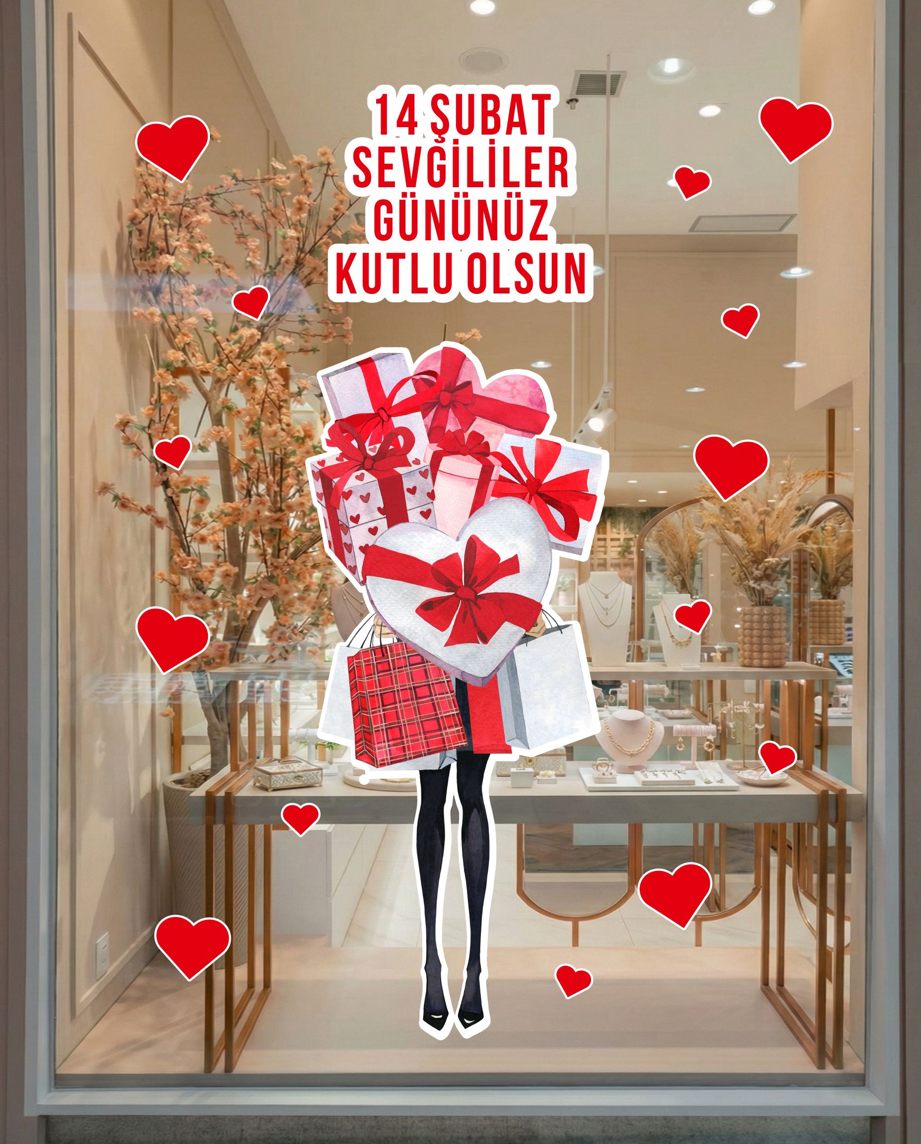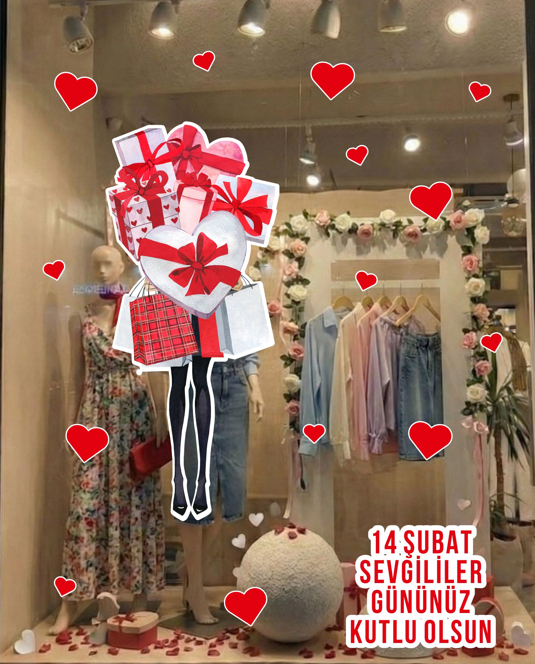 Sevgililer Günü ruhunu bulunduğu ortama taşıyarak sıcak ve romantik bir ambiyans oluşturur. Vitrin ve yaşam alanlarında dikkat çekici bir etki sağlar.