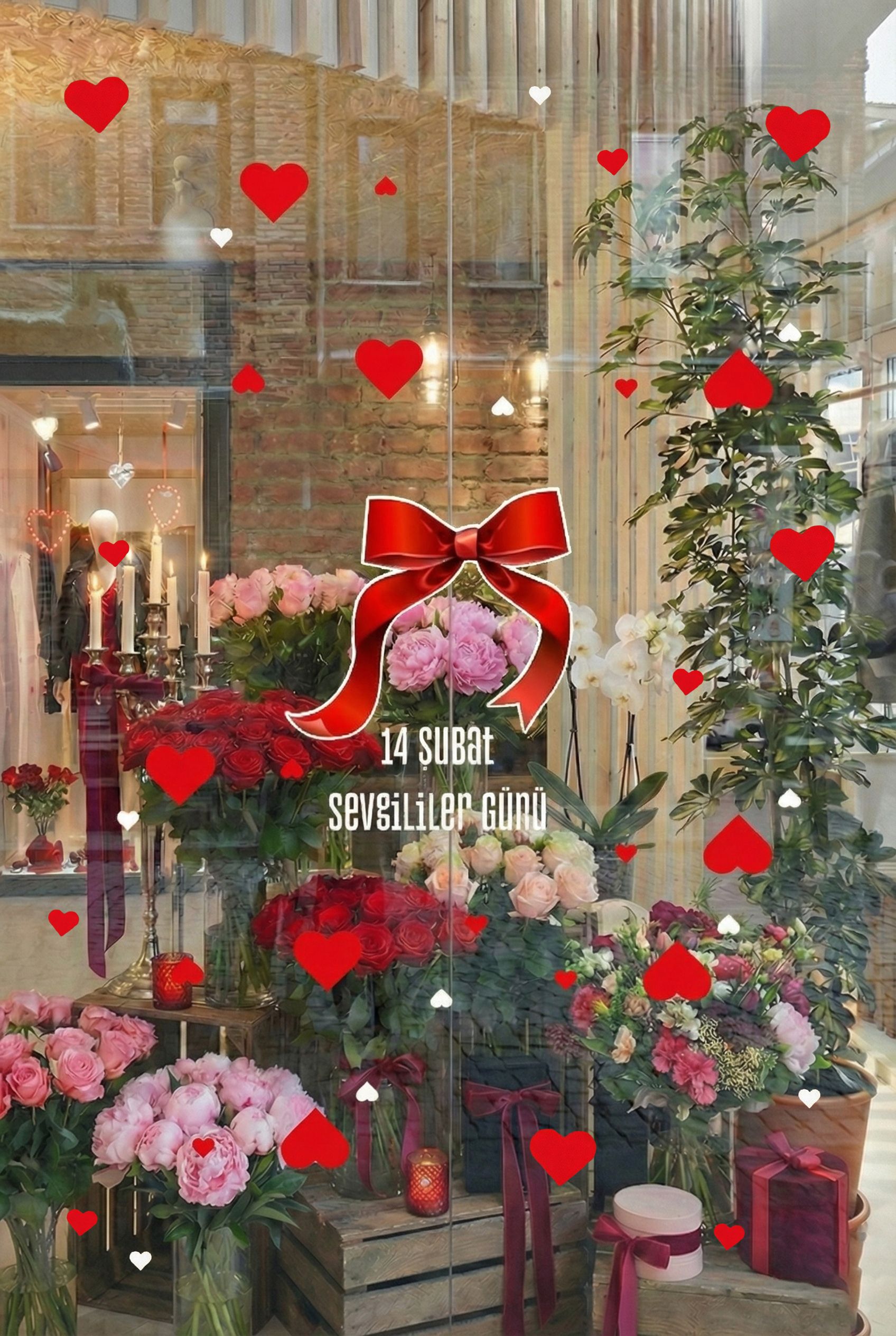 Şık tasarımıyla mekânınıza sevgi temalı bir hava katar. Mağaza vitrinlerinde, ev ve ofis camlarında fark edilir bir atmosfer oluşturur.