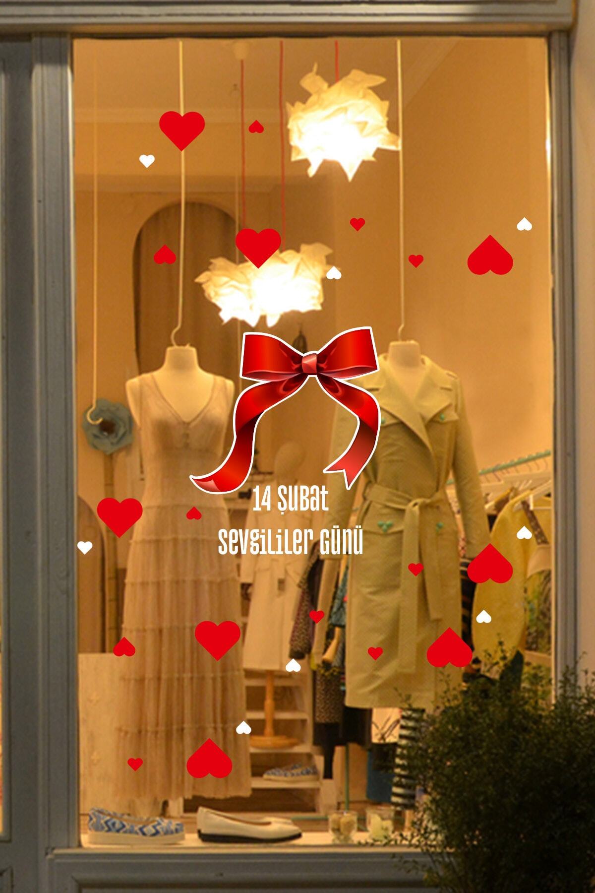 Kırmızı kurdela ve kalp motifleriyle tasarlanmış olan sticker, görsel olarak etkileyici bir atmosfer yaratır. Sevgililer Günü gibi özel günlerde dekorasyonunuzu tamamlayacak harika bir detaydır.
