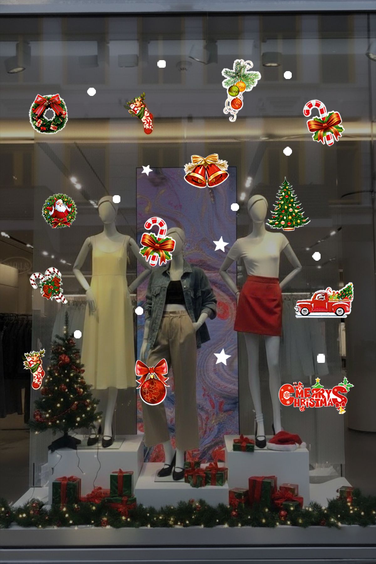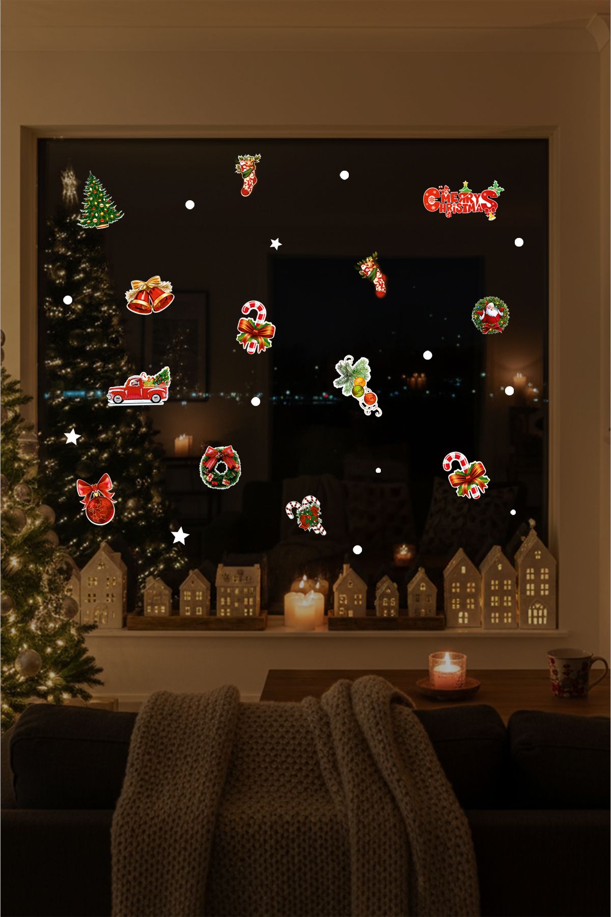 Stickerlar, hem cam kapılara hem de duvarlara kolayca yapıştırılabilir. Gereksiz zorluklar yaşamadan yeni yıl süslemelerinizi hayata geçirebilirsiniz.