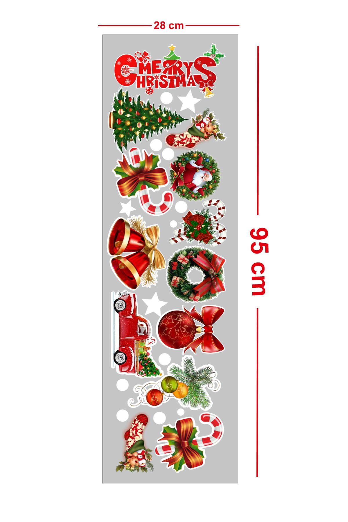 Yeni yıl coşkusunu evinize yansıtmak için tasarlanmış bu renkli yılbaşı stickerları, cam kapılarınız ve duvarlarınız için mükemmel bir dekorasyon seçeneğidir. Özel tasarımı sayesinde her tarza uyum sağlar, kolayca yapıştırılır ve çıkarılır. Evinize neşe katacak ve misafirlerinizi etkileyecek bu süslemelerle yeni yıl spiritini yaşayabilirsiniz.