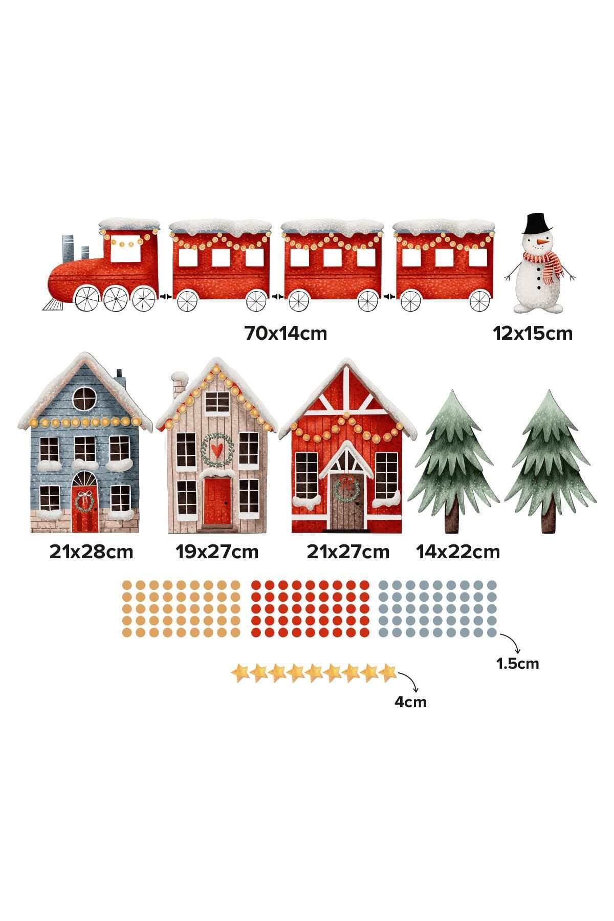 Yılbaşı Tren Evler Sticker Seti, çocuk ve bebek odalarını şenlendirerek mutlu bir yeni yıl atmosferi yaratmak için tasarlanmıştır. Canlı renkleri ve eğlenceli tasarımı ile bu sticker seti, çocuklarınızın hayal gücünü ateşleyecek ve yılbaşı kutlamalarını daha özel hale getirecektir.